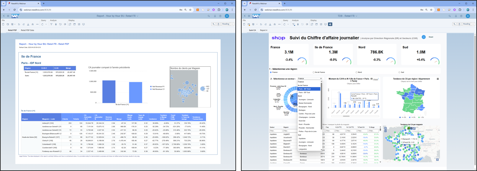 - Filtrage en temps réel par région, département, magasin
