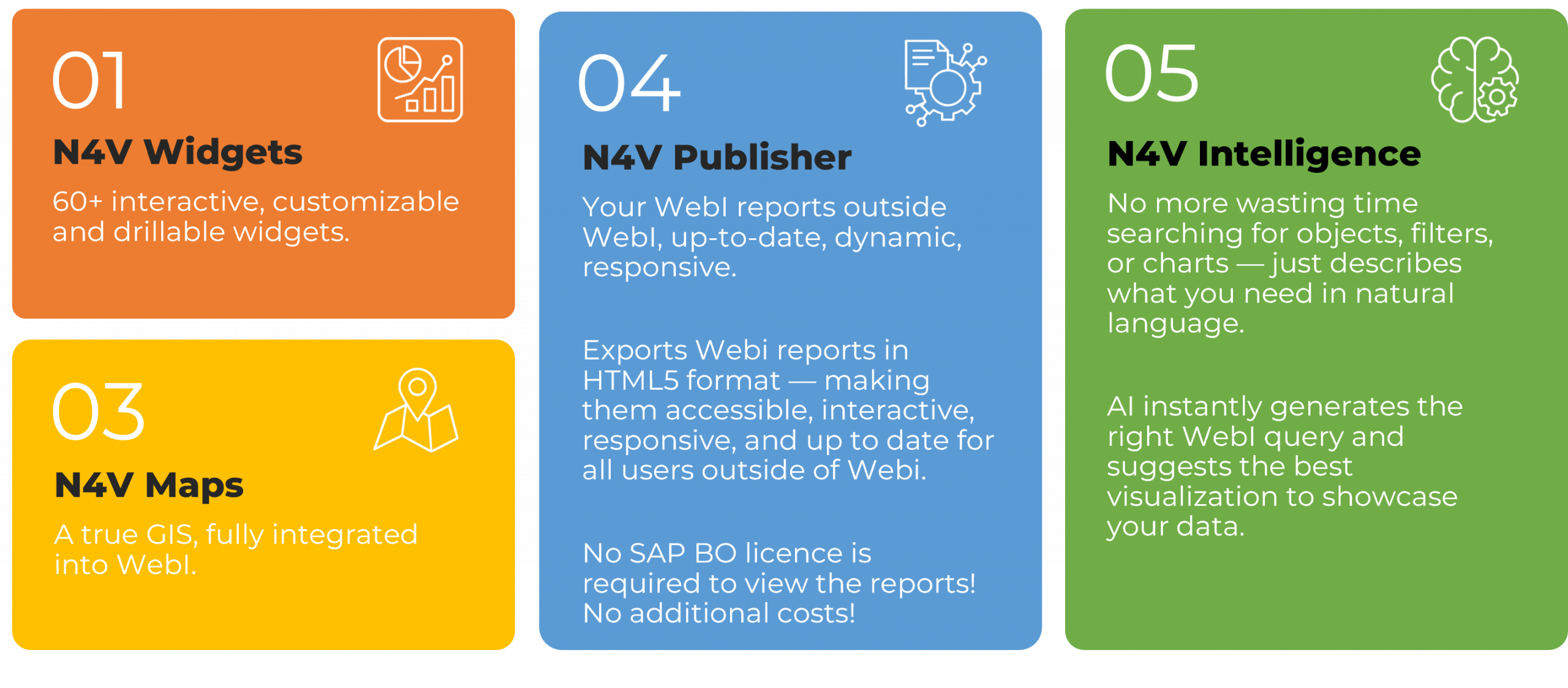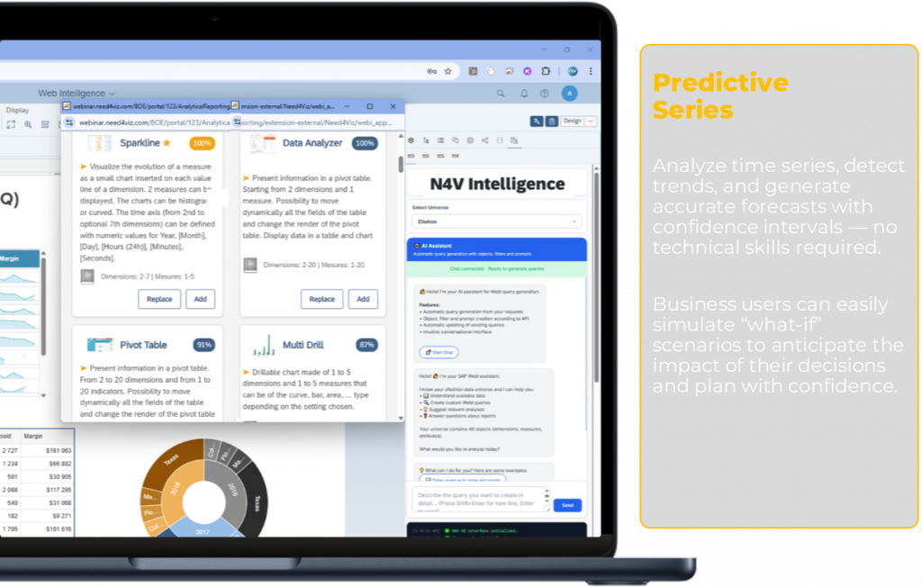 N4V Intelligence brings the power of artificial intelligence directly into SAP WebI, with three major features: