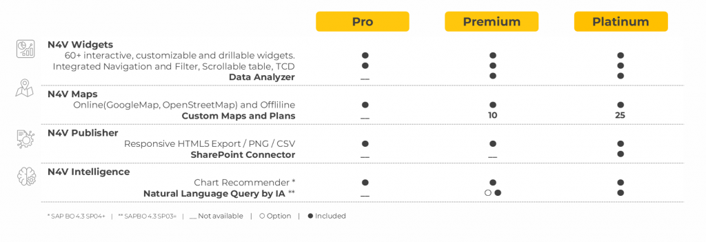 N4V FOR WEBI is available in three editions: